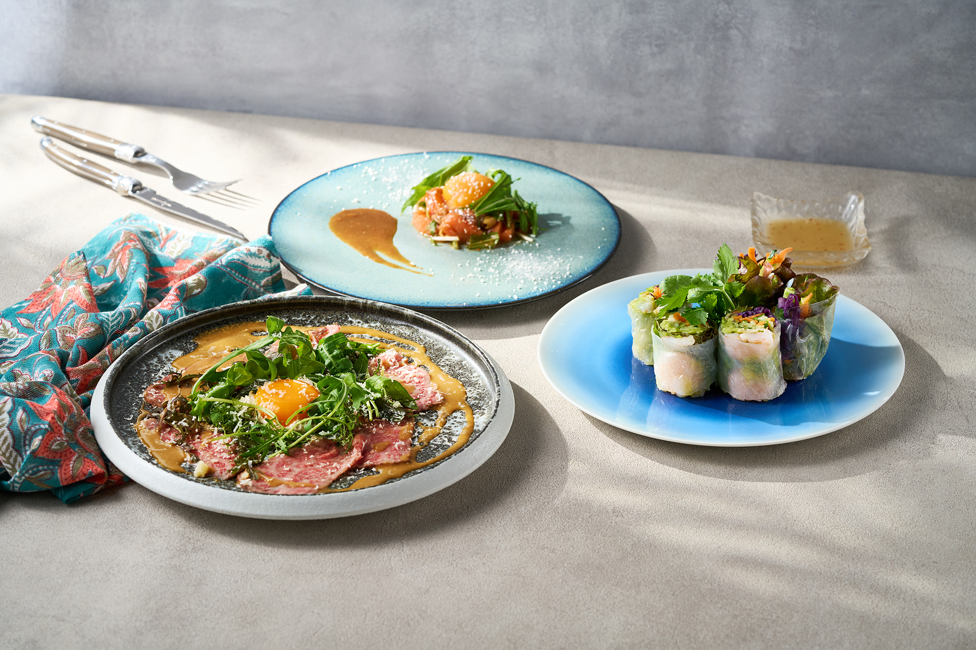 Fish Bank TOKYO is a stylish space which is comfortable for adults with a panoramic view of Tokyo Tower and Odaiba area, where chefs carefully select seasonal seafood from around the world. They modernize it with French, Italian, and Mediterranean cuisine. You can enjoy the beautiful, seasonal, modern seafood cuisine to your heart’s content. The night view from the large glass windows is also breathtaking!