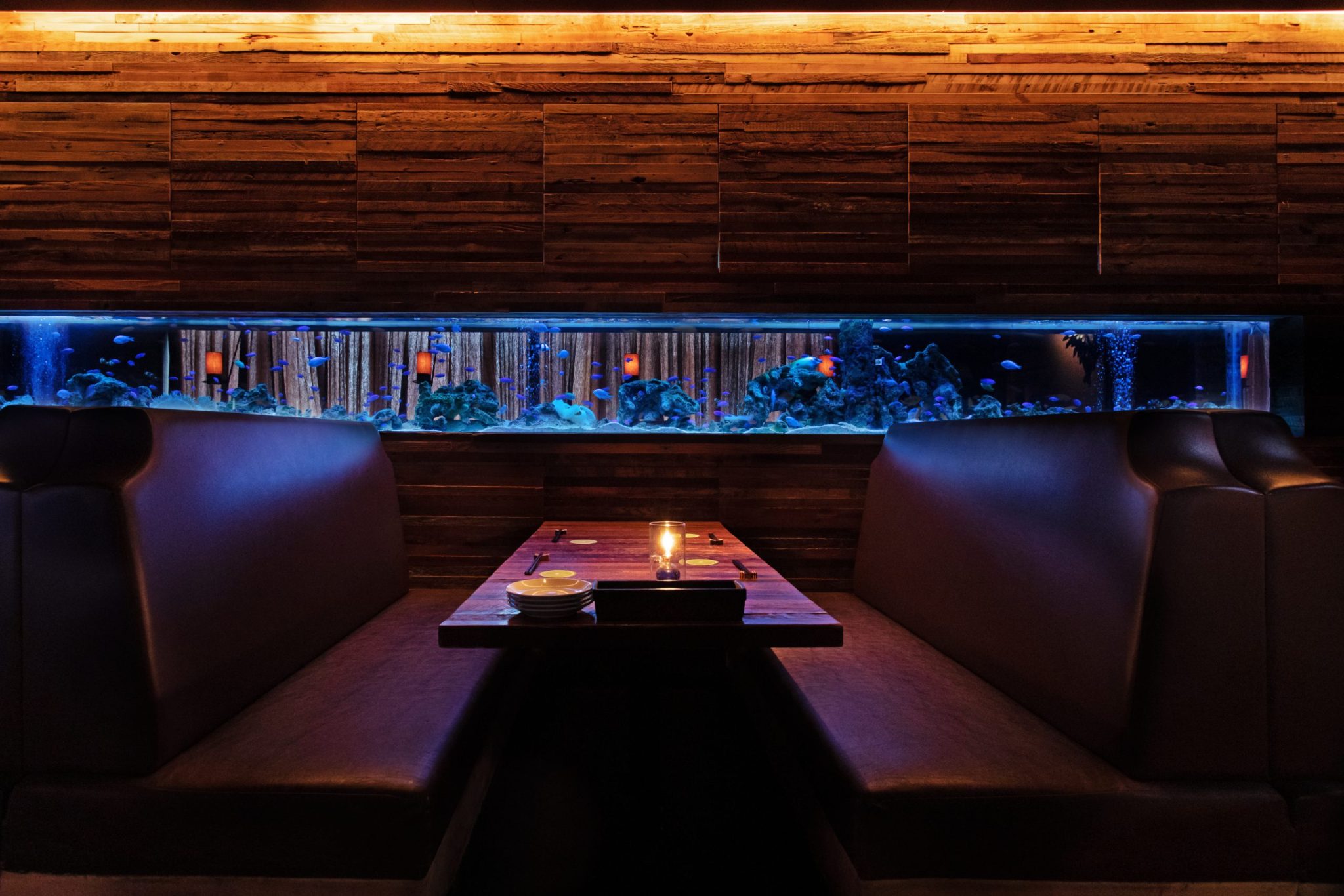 One of Tokyo’s largest aquarium dining rooms with 10,000 tropical fish.